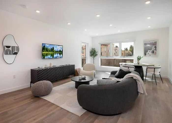 Deluxe Modern 2-Bedroom Condo W/ Roof Deck! Los Ángeles, situado a una distancia de 4 km del Observatorio Griffith, cuenta con un aparcamiento para los que viajan en coche. Paramount Pictures se encuentra a tan solo 6 minutos a pie, mientras que el Paseo de la fama de Hollywood también está a una distancia de 2 km de este apartamento.